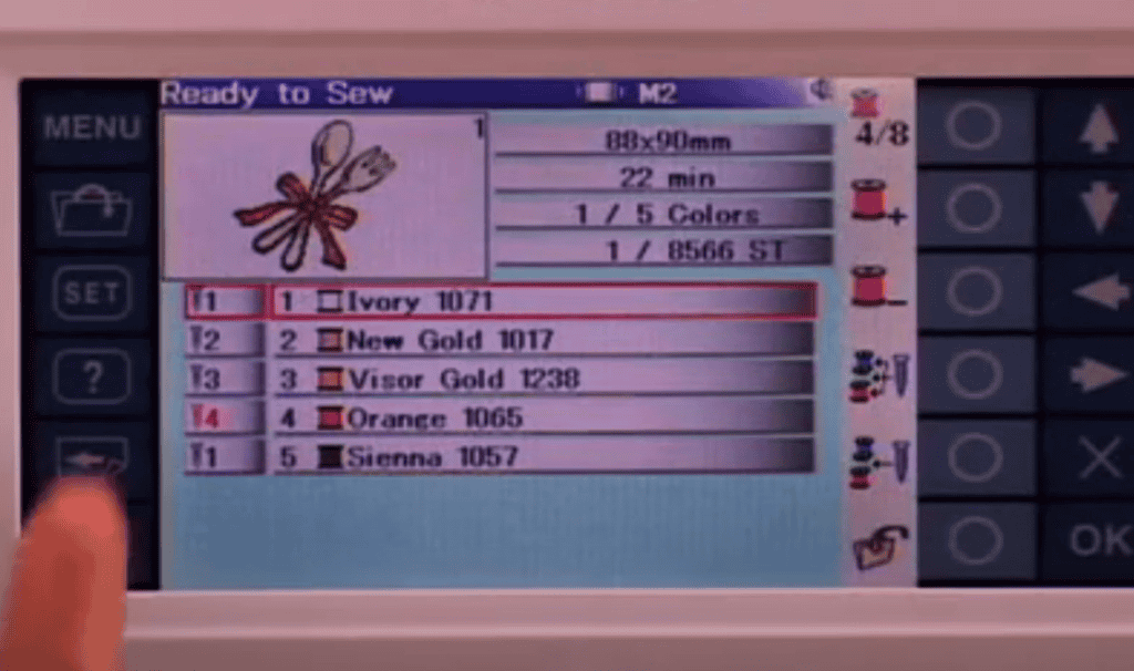 - 5.7″ Interactive Display: The large Remote Computer Screen (RCS) provides a clear, user-friendly interface for accessing and editing designs. It displays all 50 built-in designs along with any additional designs loaded via the USB port.